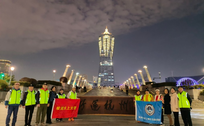 在国际志愿者日这个特别的日子里,杭州运河水警与水上救生志愿者组成的联合巡逻队,开展运河夜巡及防溺水宣传活动。