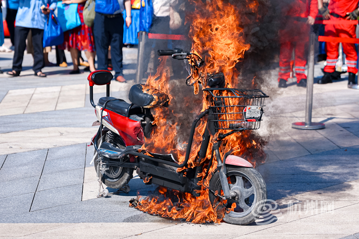 现场设六大沉浸式体验区,让市民“零距离”学防灾技能。烟道逃生体验区模拟浓烟火场,市民弯腰低姿、捂湿毛巾摸索逃生,亲身体会正确姿势的重要性;电动自行车灭火科普区1:1还原停放场景,消防员结合案例讲解起火“三不原则”,提醒严禁车、电池入楼道及飞线充电;厨房安全演示区通过对比错误与正确操作,教大家用锅盖、灭火毯处置油锅起火;灭火器科普区拆解器械,市民实操“提、拔、握、压”使用步骤;伤者转运区里,市民体验被固定在担架上转运,了解保护伤者的细节;地震房屋破拆区用缩微模型,展示消防员开辟安全通道的专业操作。