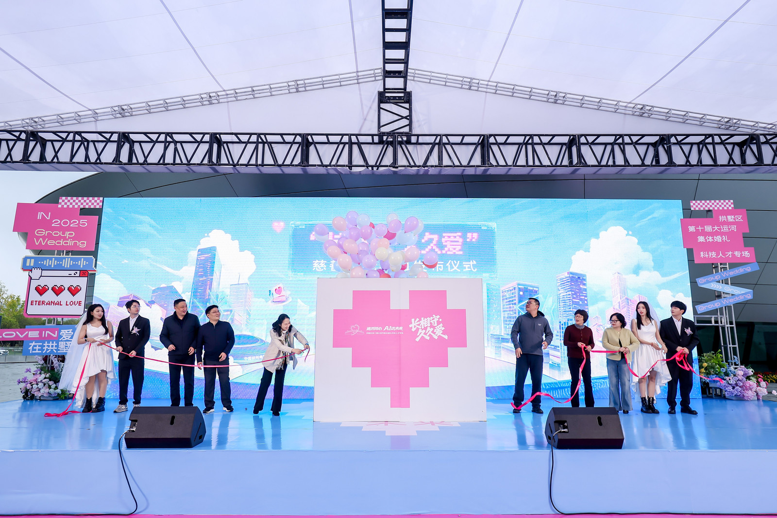 从通济桥的古老石阶,到电竞中心的动感时尚;从实时跳动的心率数据,到3D技术的浪漫赋能;从沉浸式的非遗体验,到前沿的AI互动……拱墅区第十届大运河集体婚礼将地方文化底蕴、科技创新活力与青年人才的个人幸福紧密相连。现场,拱墅区还发布了“长相守·久久爱”慈善惠老项目。该项目将通过重点活动宣发、常态化募集等方式募集资金,资助拱墅区、淳安县临岐镇为老服务公益事业。