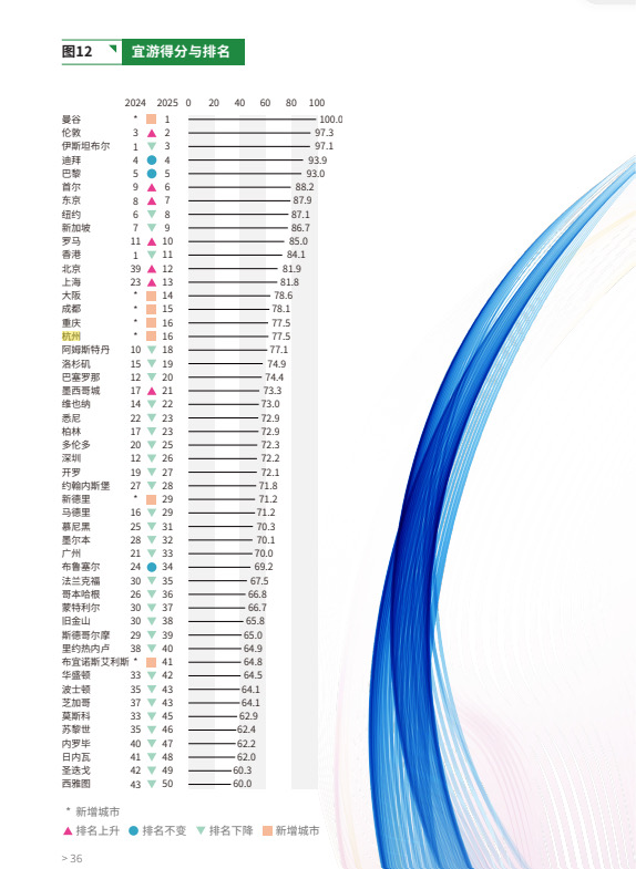 近日,清华大学在北京发布《国际交往中心城市指数2025》报告。作为本次指数新增城市,杭州凭借数字网络、科技创新、宜游环境等成功上榜,并位列全国综合排名第4名。
