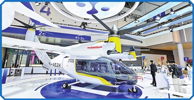 杭实集团展台上的eVTOL(电动垂直起降飞行器)AE200。