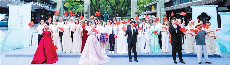 西湖畔的一场快闪 上演对祖国的深情告白