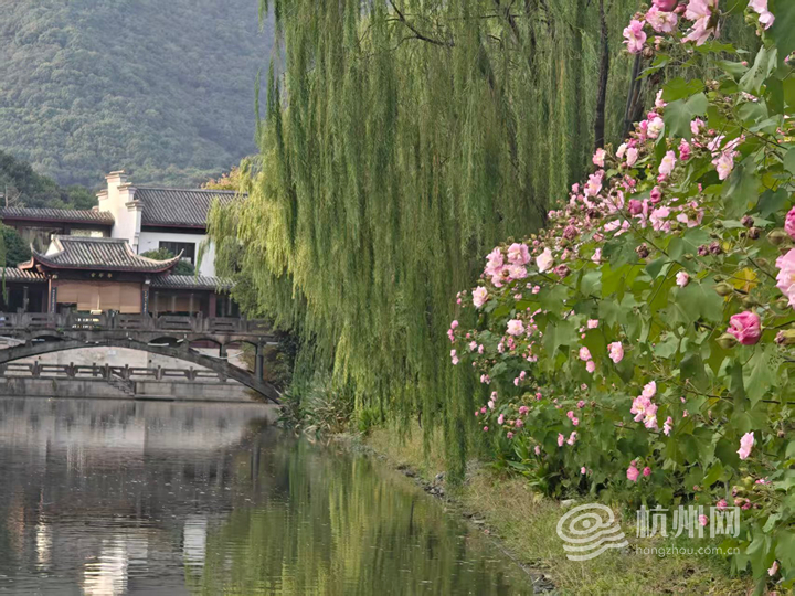 想换换花样,就去备塘河看看杭城秋日的“小惊喜”。这里的桂花已经盛开,更有意思的是,几株樱花和大片木芙蓉居然也开着,或许是气候恰好,或许是花期巧合,让本应春日绽放的樱花、秋日盛开的芙蓉,恰好与桂花在备塘河畔撞了个满怀。这份不期而遇的景致,正是独属于秋日杭城的小确幸。