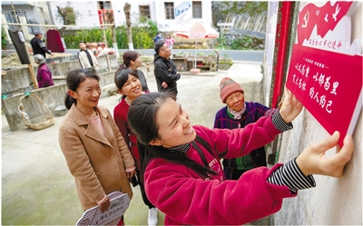图为淳安县姜家镇玉泉村党员干部把家风家训牌挂在自家大门口,晒出家风家训,自觉接受群众监督。