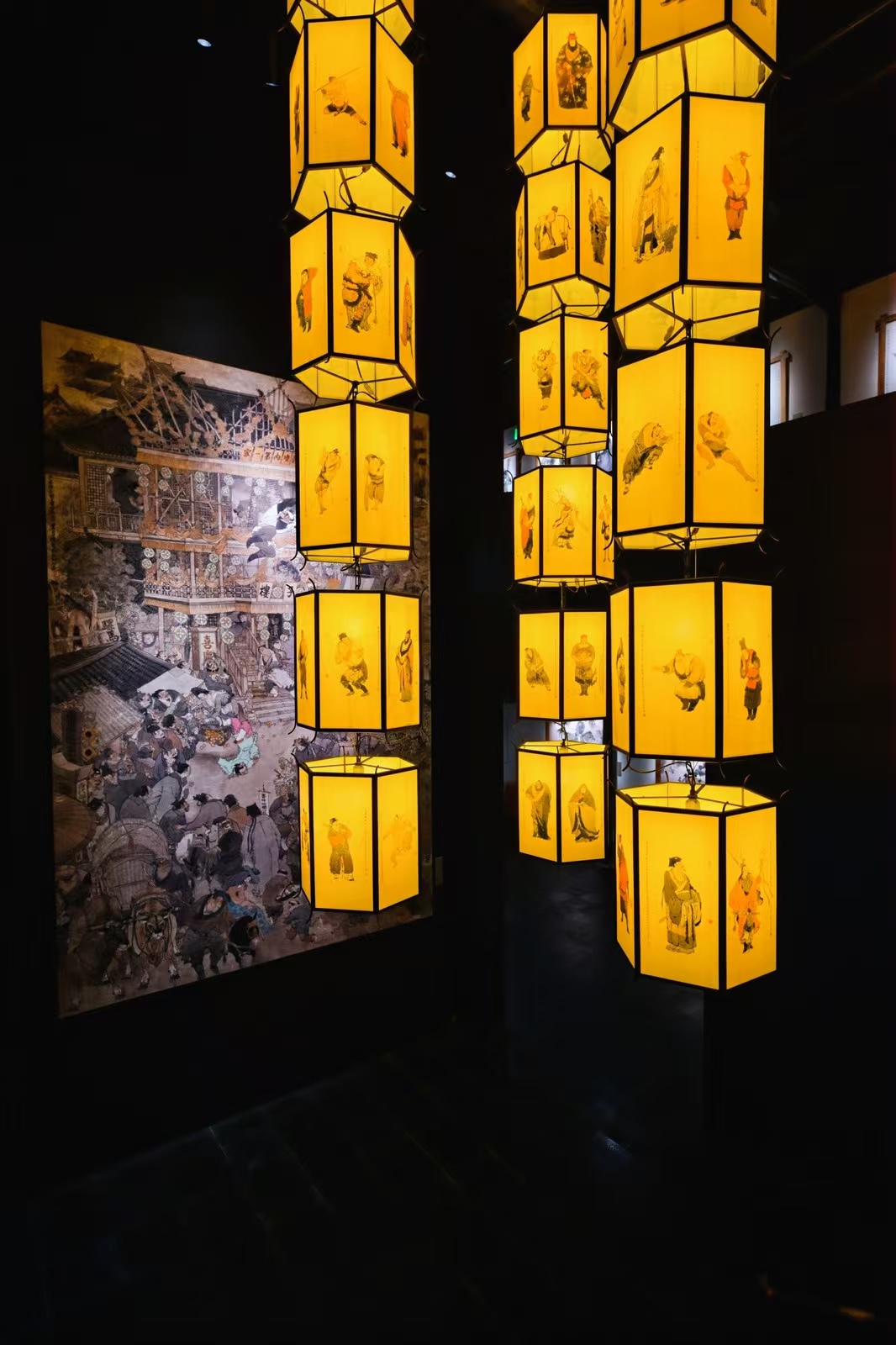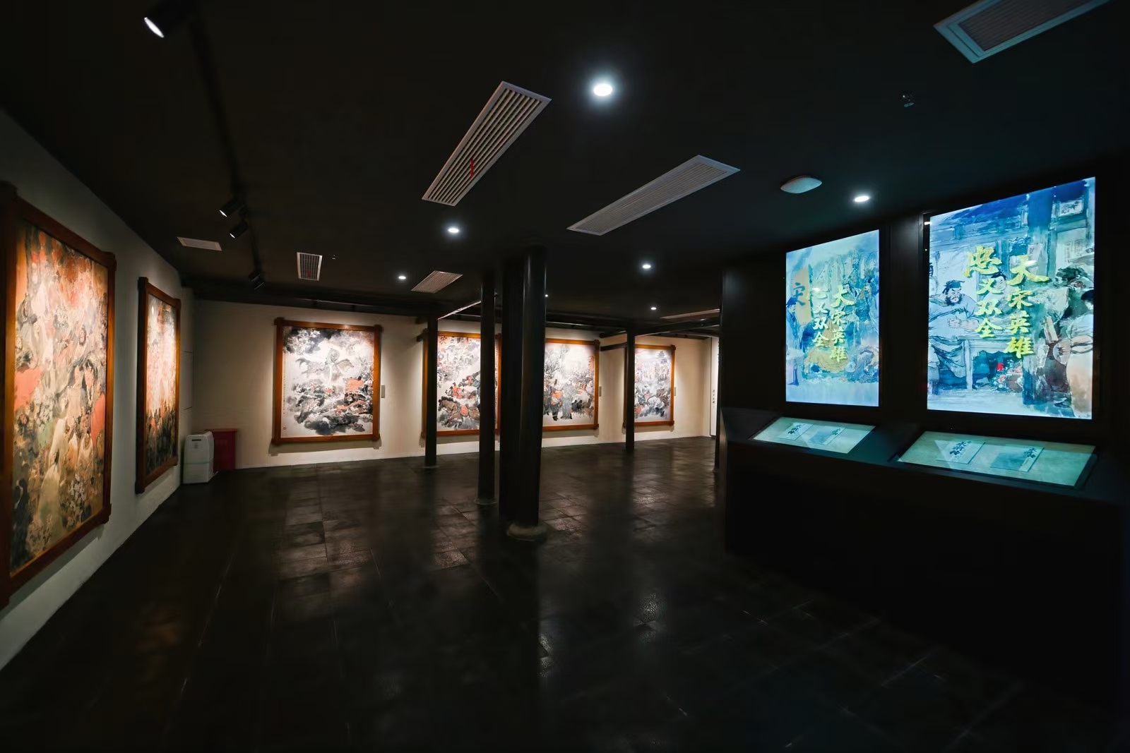 在水浒忠义厅,《水浒传》中的经典画面极具故事性和艺术性,水浒一百零八将画像更是神态鲜活。翰墨古今多媒体厅里,《上海城隍庙群仙欣会图》《三十六雷将》《水浒梁山群雄末途图》等画作通过平移处理“活”了起来,卷轴缓缓铺展开来,人物各具动态,将戴敦邦精湛的画技放大展示,更传画中韵味。108IN艺文空间展陈戴敦邦作品周边,艺术传播中心联合西湖文创推出近 60 款其艺术IP主题文创产品,让古典艺术融入普通观众的日常生活之中。108 将艺术回廊,则可以使用手机NFC 感应召唤水浒英雄,观看专属动画,了解英雄豪杰的勇毅事迹。