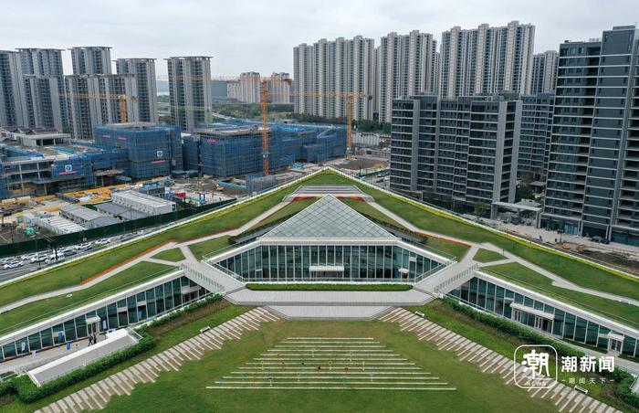 从建筑外观上,版画院借鉴“卢浮宫”玻璃金字塔造型,巧妙呼应“山水城林”交融的未来愿景。设计团队以“未来感”与“自然融合”为核心,通过斜坡结构将主体功能空间隐于地下,并将屋顶转化为与周边绿地无缝衔接的公共活动区域,实现建筑与环境的有机共生。这一设计融入了未来社区理念,将文化设施与公共空间紧密结合,为市民提供了全新的文化体验场所。